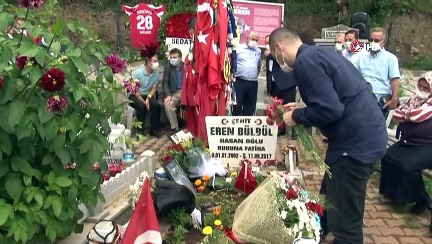 Trabzon'un maçka ilçesi kırsalında terör örgütü mensupları tarafından şehit edilen 15 yaşındaki eren bülbül'ün mezarı kurban bayramı'nın birinci gününde ziyaretçi akınına uğradı. Eren bülbül, 3 yıl önce ölümüyle tüm türkiye'yi yasa boğmuştu. Trabzon'un maçka ilçesi kırsalında, 11 ağustos 2017'de bölücü terör örgütü mensuplarıyla sağlanan sıcak temas sırasında şehit düşen 15 yaşındaki eren bülbül, şehadetinin birinci yılında mezarı. Trabzon maçka'da 11 ağustos 2017'de teröristler tarafından şehit edilen eren bülbül 15 mezarı başında dualarla anıldı. Eren bülbül'ün, ilçeye bağlı köprüyanı mahallesi'nde bulunan mezarı başındaki anma programına;